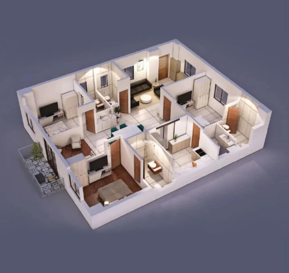 Perfectly suited for small families and working professionals, the 2 BHK flatscombine smart space utilization with stylish interiors.